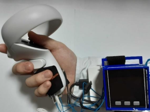 VRコントローラには,握力で操作する機能は一般的には搭載されていない.VRコントローラに握力感知機能を追加できれば,握り潰しの操作を行うことができるなど,コンテンツ表現の幅が広がる.そこで本研究では,既存のVRコントローラに巻きつけるだけで握力感知機能を追加するベルト状センサGRABを開発する.GRABの有効性を検証するため,VRテストアプリを実装して評価実験を実施した.評価実験の結果,想定通りの操作が可能であることが確認できた.また,任意の握力強度に調整することが困難という課題も明らかとなった.